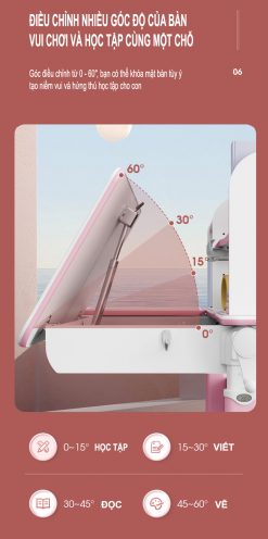 Bàn học thông minh chống gù, chống cận cho trẻ em ngày càng được nhiều bậc phụ huynh quan tâm. Những sản phẩm này thường có cấu tạo đặc biệt, khả năng điều chỉnh chiều cao của bàn, ghế và độ nghiêng của mặt bàn để phù hợp với vóc dáng của bé.