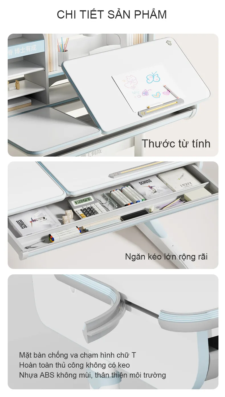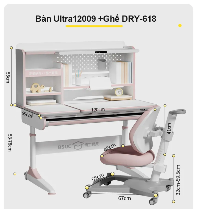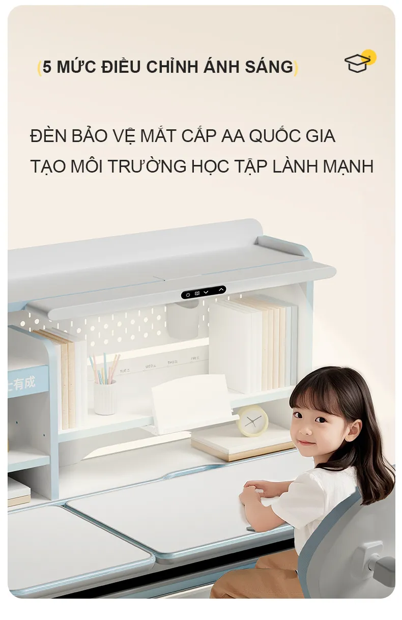 Bàn học chống gù tích hợp đèn học cao cấp Ultra-12009