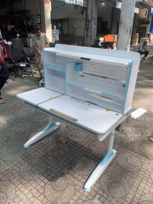 - Phụ kiện:Kệ sách, ngăn bàn, giá đặt sách/ipad, chặn sách, móc treo cặp, đồng hồ hiển thị độ nghiêng, chân bàn có bánh xe di chuyển.
