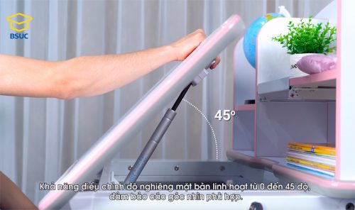 Một đặc điểm ưu việt khác của bàn học chống gù BSUC mã DRZ-8001 là có thể tuỳ chỉnh độ nghiêng của mặt bàn từ 0 đến 45 độ để phù hợp với các mục đích học tập của bé, giúp bé cảm thấy thoải mái nhất. Theo các chuyên gia nghiên cứu của BSUC, 4 góc nghiêng phù hợp nhất mà ba mẹ cần lưu ý như sau: