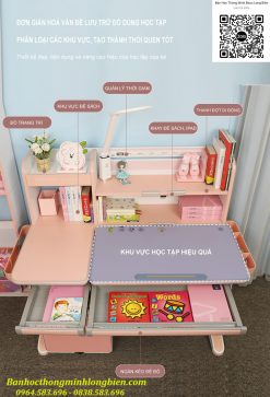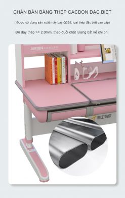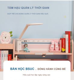 - Phụ kiện:Kệ sách, ngăn bàn, giá đặt sách/ipad, chặn sách, móc treo cặp, đồng hồ hiển thị độ nghiêng, chân bàn có bánh xe di chuyển.