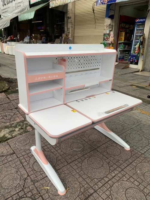 - Phụ kiện:Kệ sách, ngăn bàn, giá đặt sách/ipad, chặn sách, móc treo cặp, đồng hồ hiển thị độ nghiêng, chân bàn có bánh xe di chuyển.